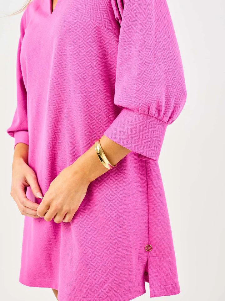 Step out in style with the Hadley Dress, a charming black dress featuring flattering 3/4 sleeves.