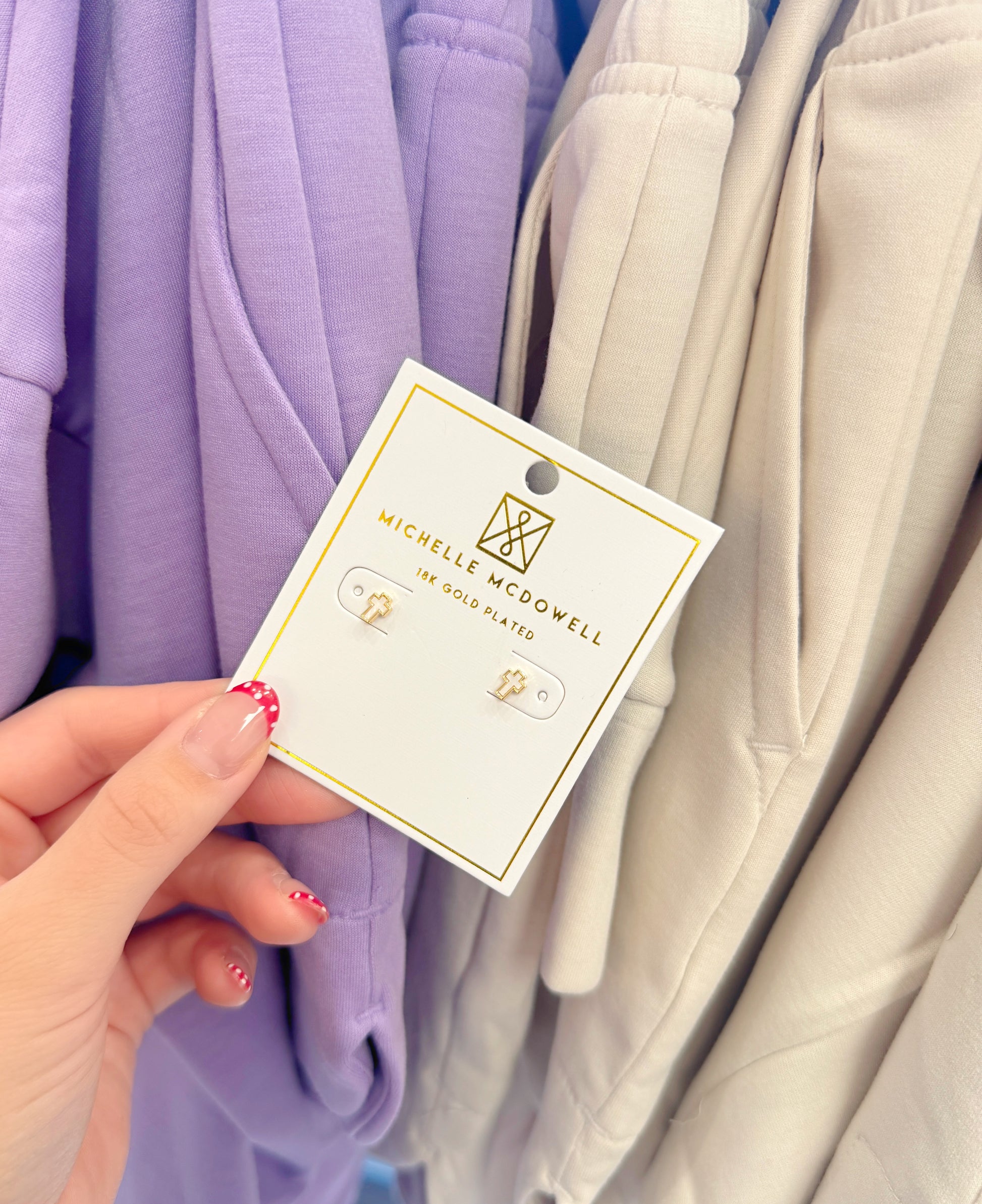 Luna Earrings feature delicate cross studs that add a touch of celestial charm to any look. These sweet, minimalist designs are perfect for everyday wear or layering with your favorite pieces. The lightweight studs sit comfortably on your ears while making a subtle spiritual statement. Whether you're dressing up or keeping it casual, Luna Earrings bring an effortless elegance that feels both timeless and on-trend.