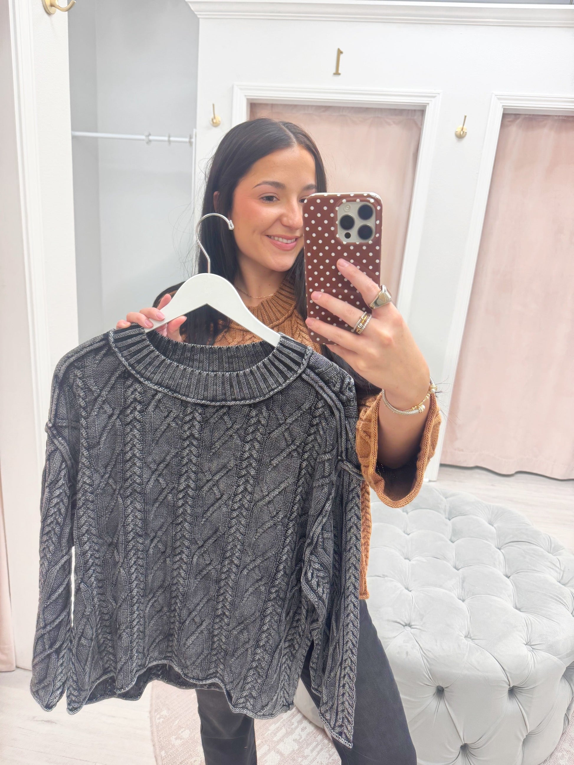 Stay cozy and cute in our Mineral Wash Cable Knit Sweater. The soft, textured knit adds a charming touch, while the mineral wash gives it a dreamy, vintage vibe.Â