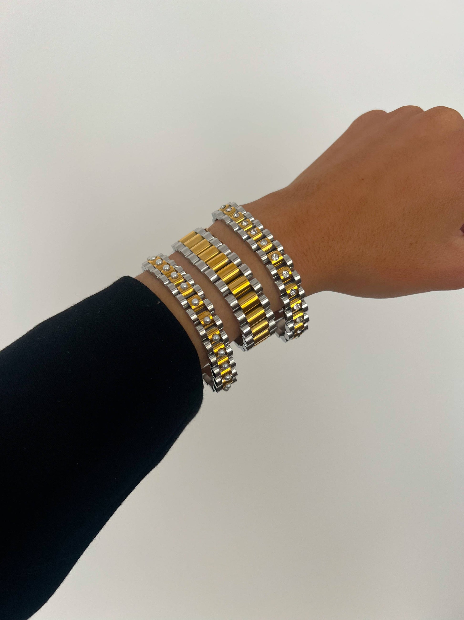 Elevate your wrist game with this versatile watch band bracelet—the perfect blend of style and function. Whether you're layering it with your favorite timepiece or wearing it solo, this piece adds instant personality to any outfit. Crafted for everyday wear, it transitions seamlessly from casual coffee runs to weekend adventures. Make a statement without saying a word.