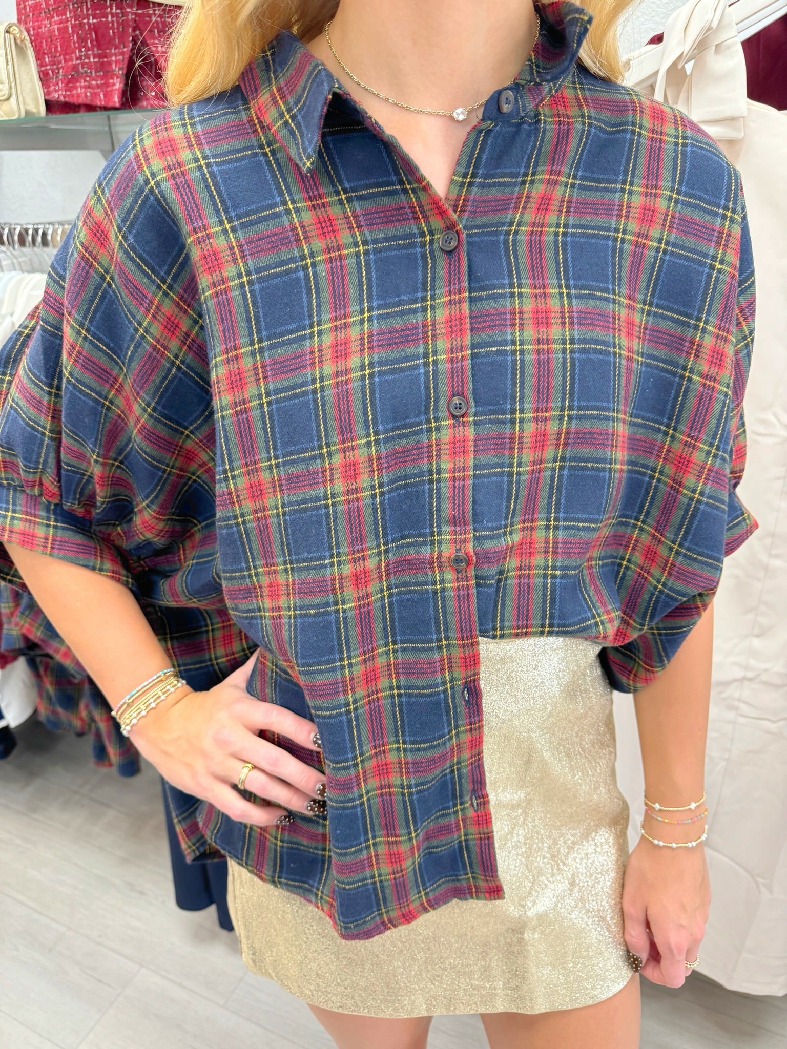Embrace festive elegance with this oversized button-down Christmas plaid top. Crafted for comfort and style, the relaxed fit flatters every frame while the classic plaid pattern brings timeless holiday charm to your seasonal wardrobe. Perfect for layering over basics or wearing solo, this versatile piece transitions seamlessly from casual gatherings to cozy nights in. The structured button-front design offers easy styling flexibility, making it an essential addition to your holiday collection.