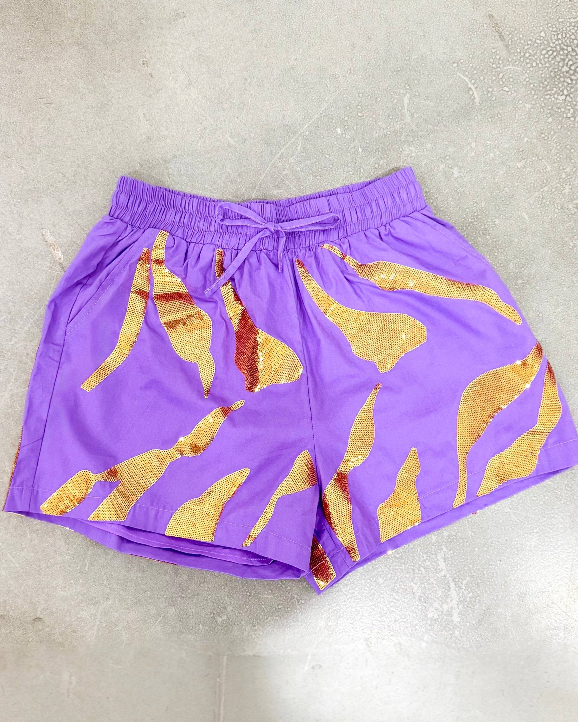 Make a bold statement with this striking Sequin Tiger Striped Gameday Set. The coordinated tank and shorts feature intricate sequin tiger stripes that commands attention while delivering effortless style. Perfect for those who embrace their wild side, this set combines comfort with eye-catching design. Whether you're heading out for your tailgate adventures or making an impression at social gatherings, this versatile pairing offers the confidence boost you're looking for all gameday season. Elevate your wardrobe with a piece that's as fierce and unique as you are.