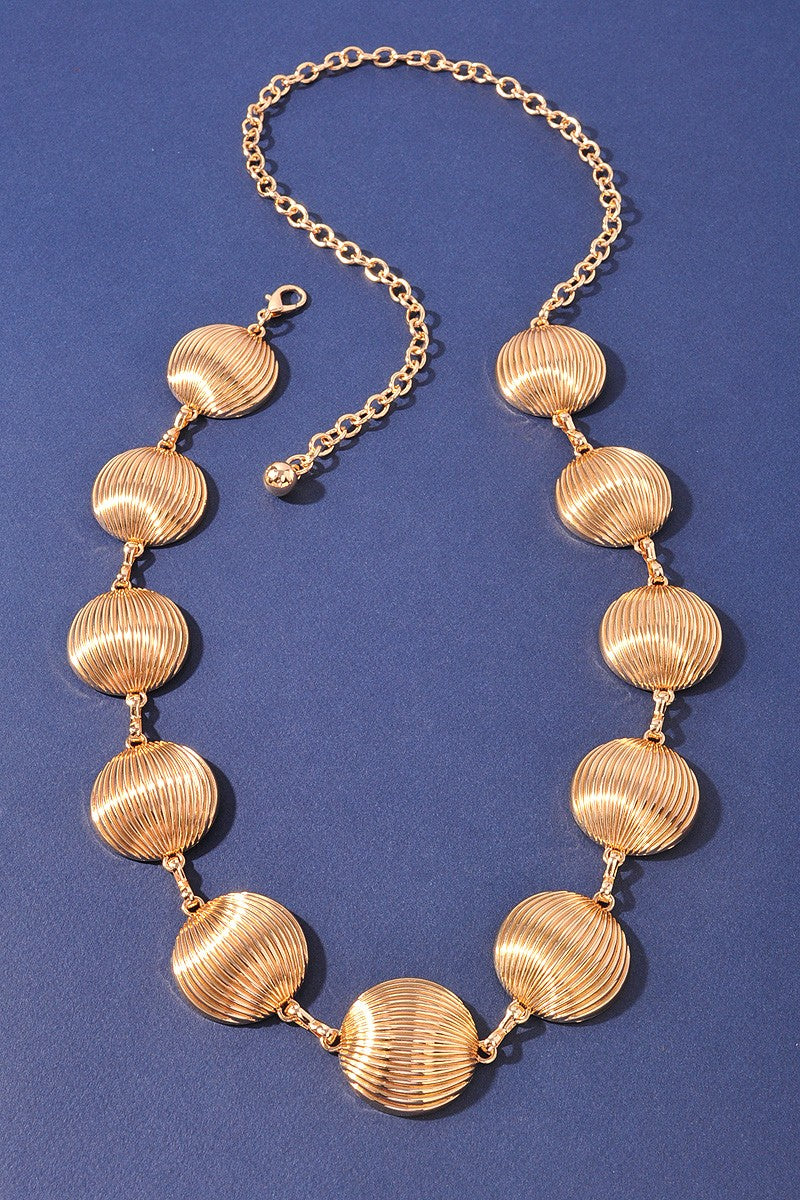 Add sparkle to your outfit with this playful textured round metal belt. It's fun design and gleaming gold finish brighten any look, making it the perfect accessory to boost your outfit.